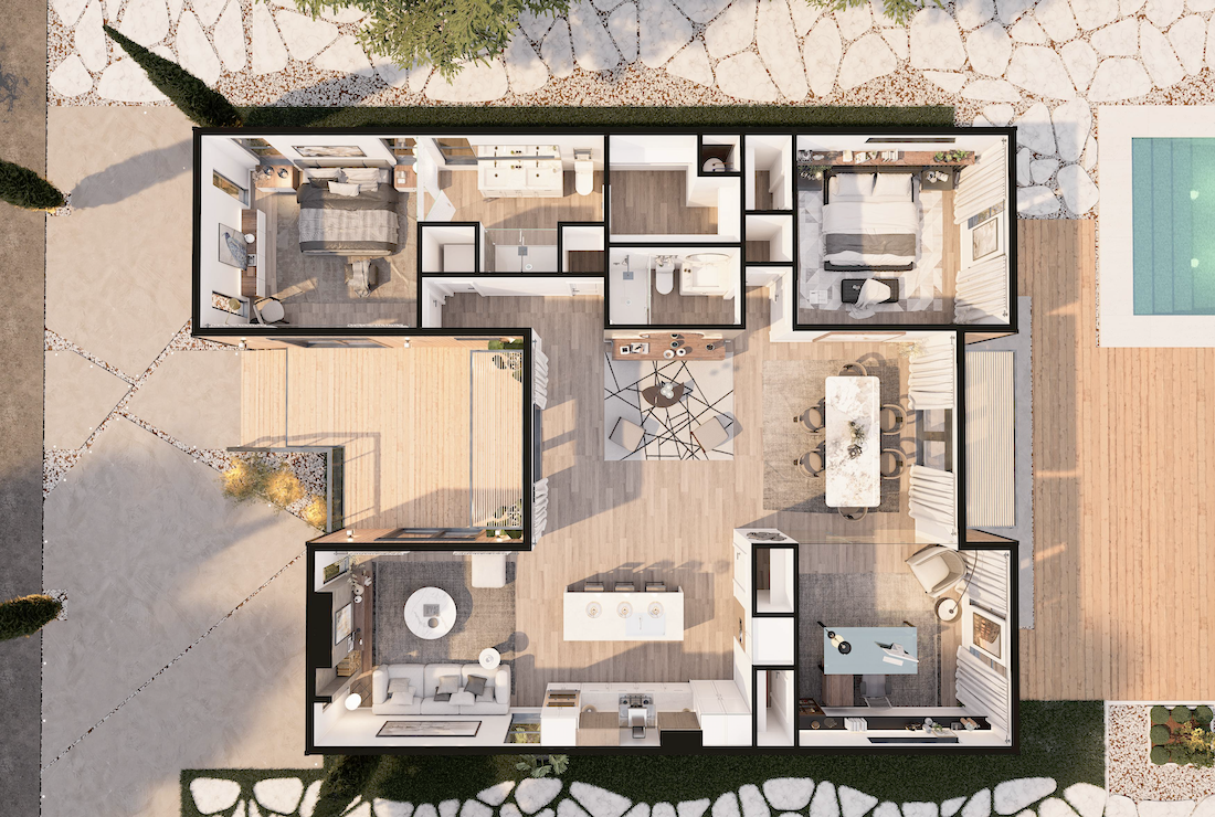 With unique features like an impressive glass partition wall and a sweeping master suite; The Pines epitomizes striking modern elegance with a highly functional and versatile floorplan.